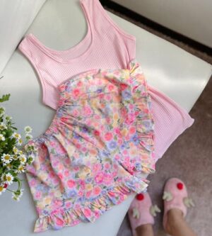 تاپ و شلوارک صورتی چرک